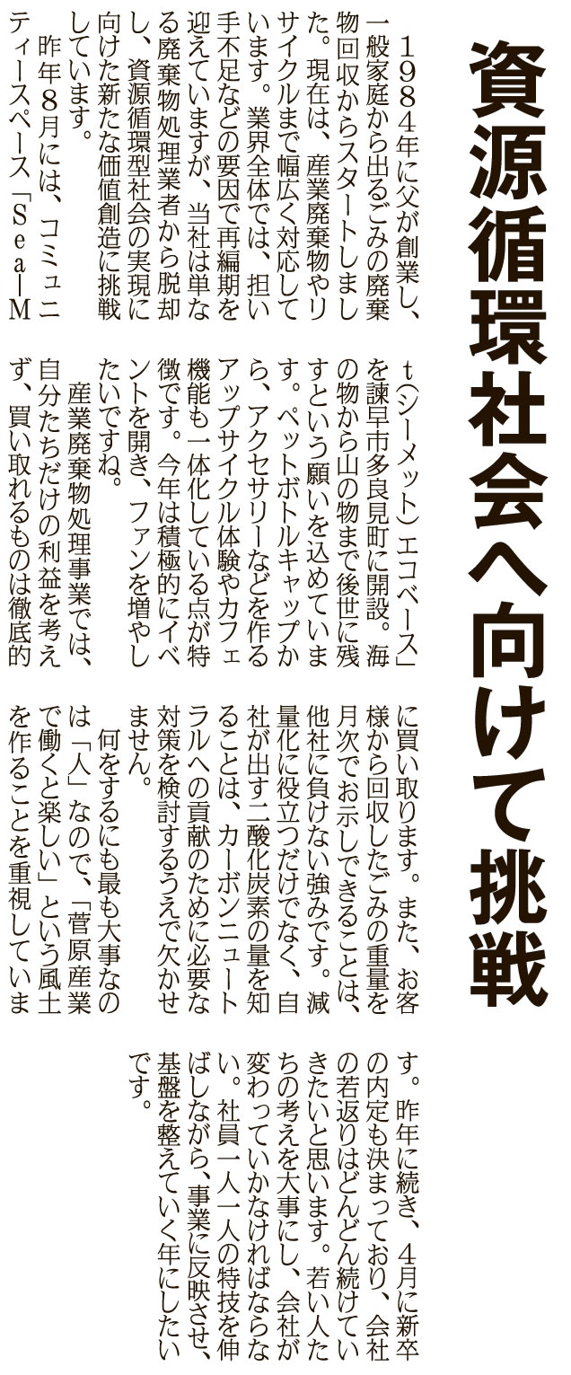 現在、有限稀少な資源を再利用し、快適な生活水準を長期的に維持する事が求められています。諫早市にとどまらず長崎県内のエリアで展開しています。