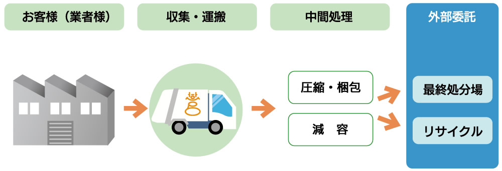 自社での中間処理、又は、各処理場へ運搬を行い、適切に処理致します。